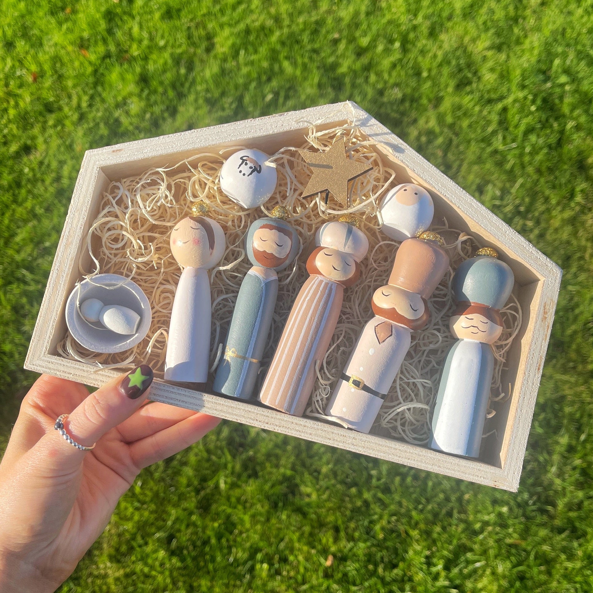 Celebrate the spirit of Christmas with this beautifully crafted wooden nativity scene.