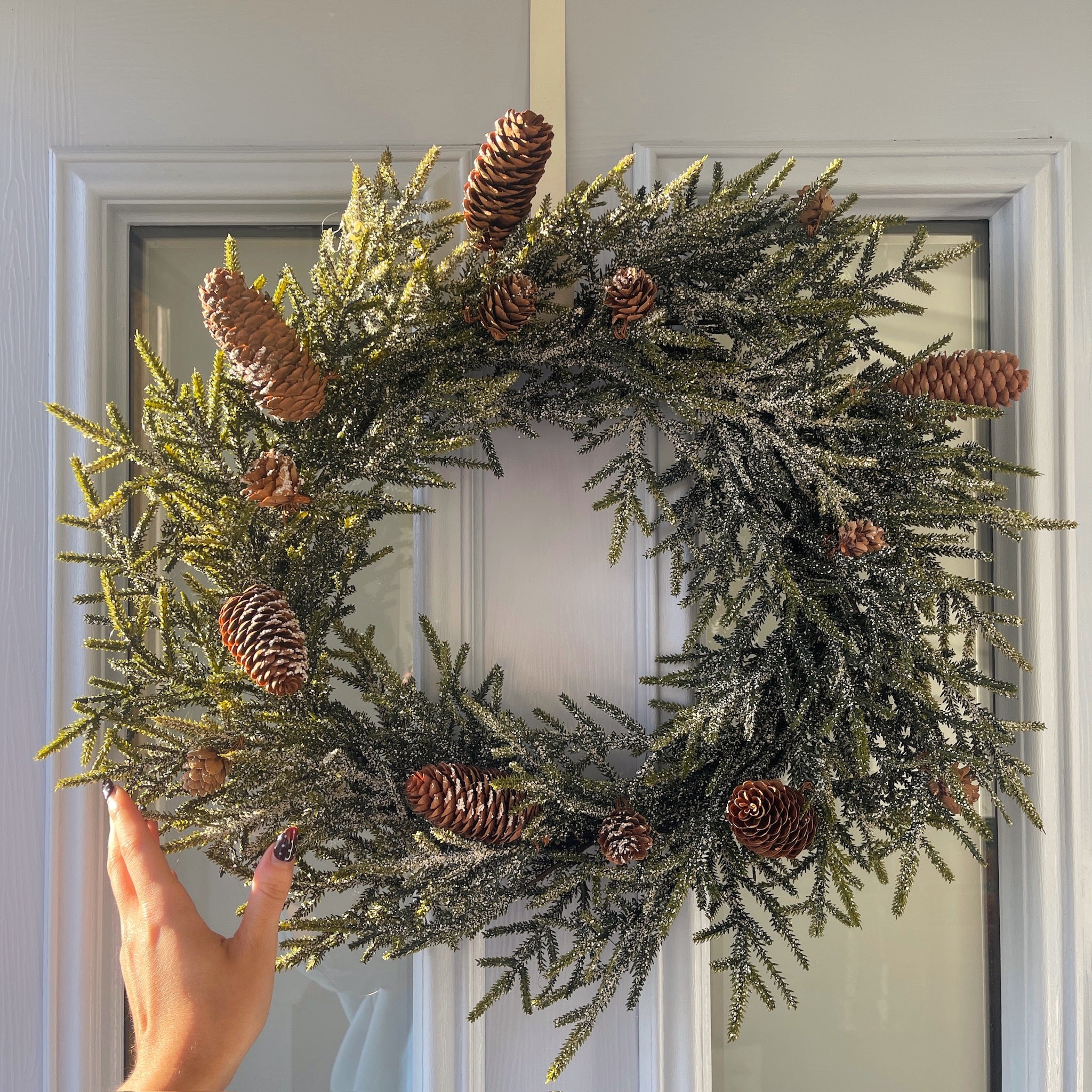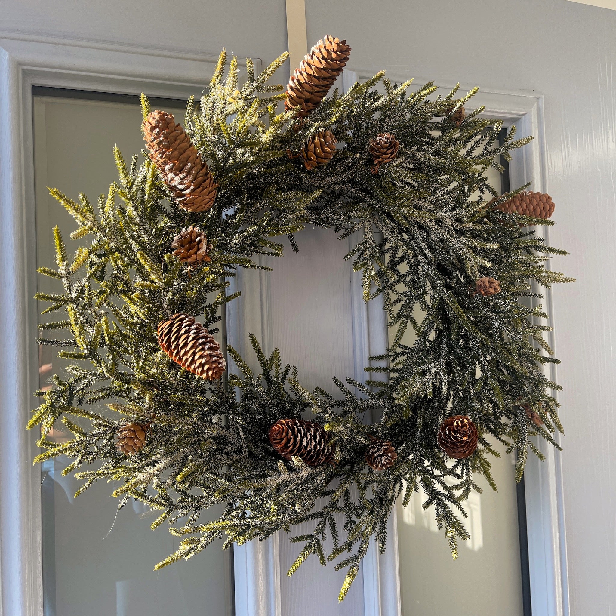 Bring the beauty of a winter forest into your home with this Christmas Frosted Woodland Wreath, featuring pine cones and frosted foliage for a natural, wintry effect.