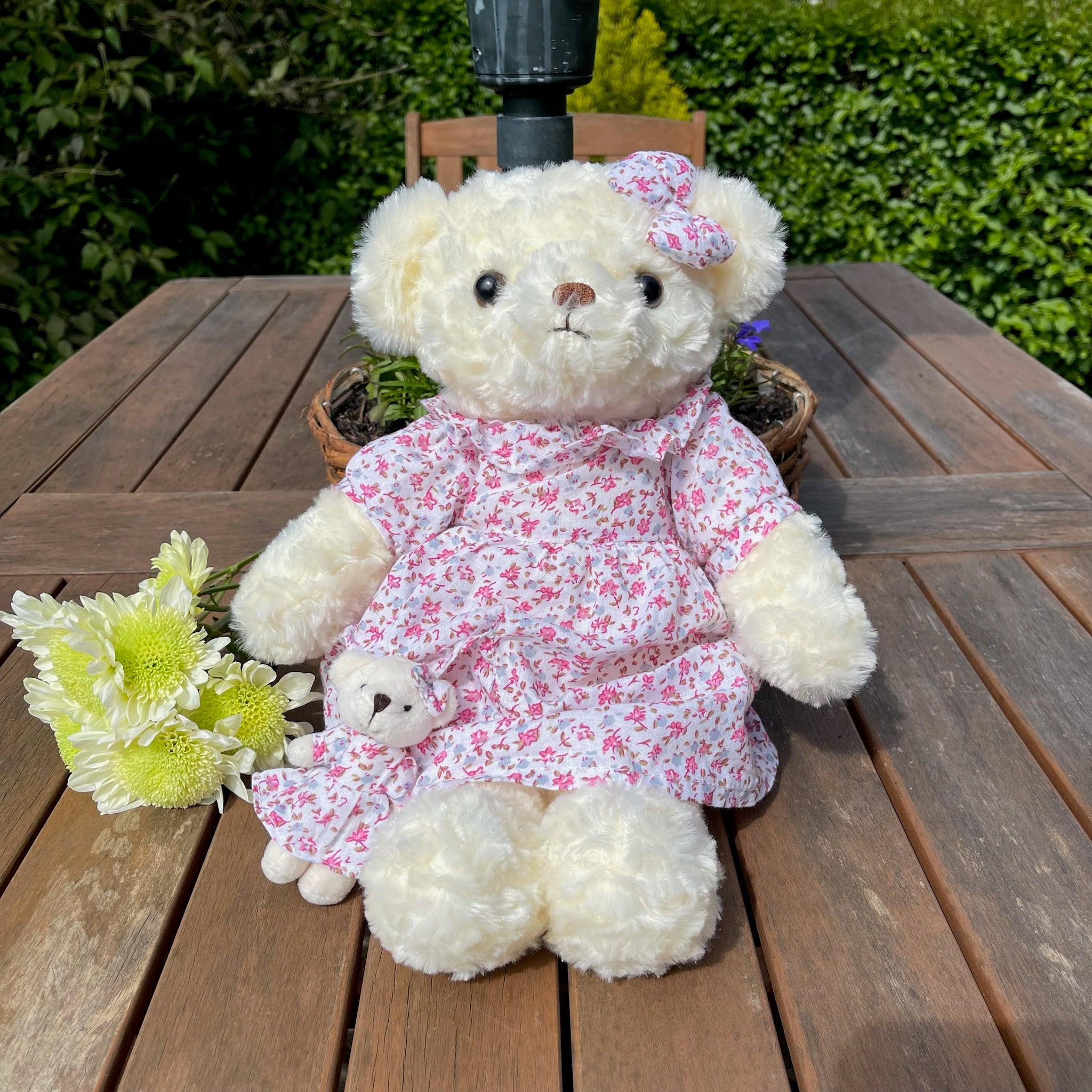 This soft and huggable bedtime bear comes with a detachable baby tucked snugly in his pocket.
