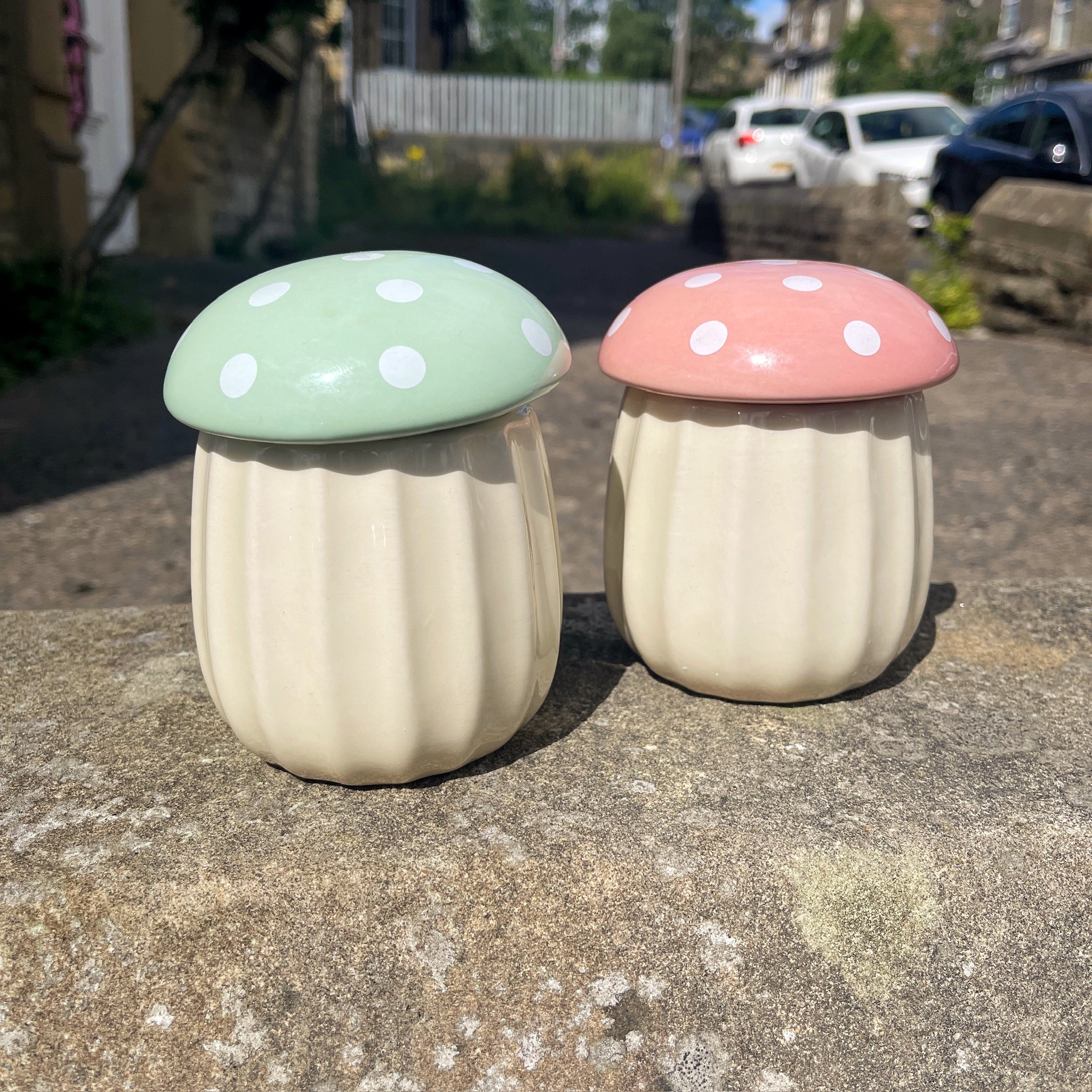Bring a touch of woodland charm to your home with this delightful Candle in a Mushroom Pot. Available in pink or green, each features a removable lid that reveals a cosy candle inside.