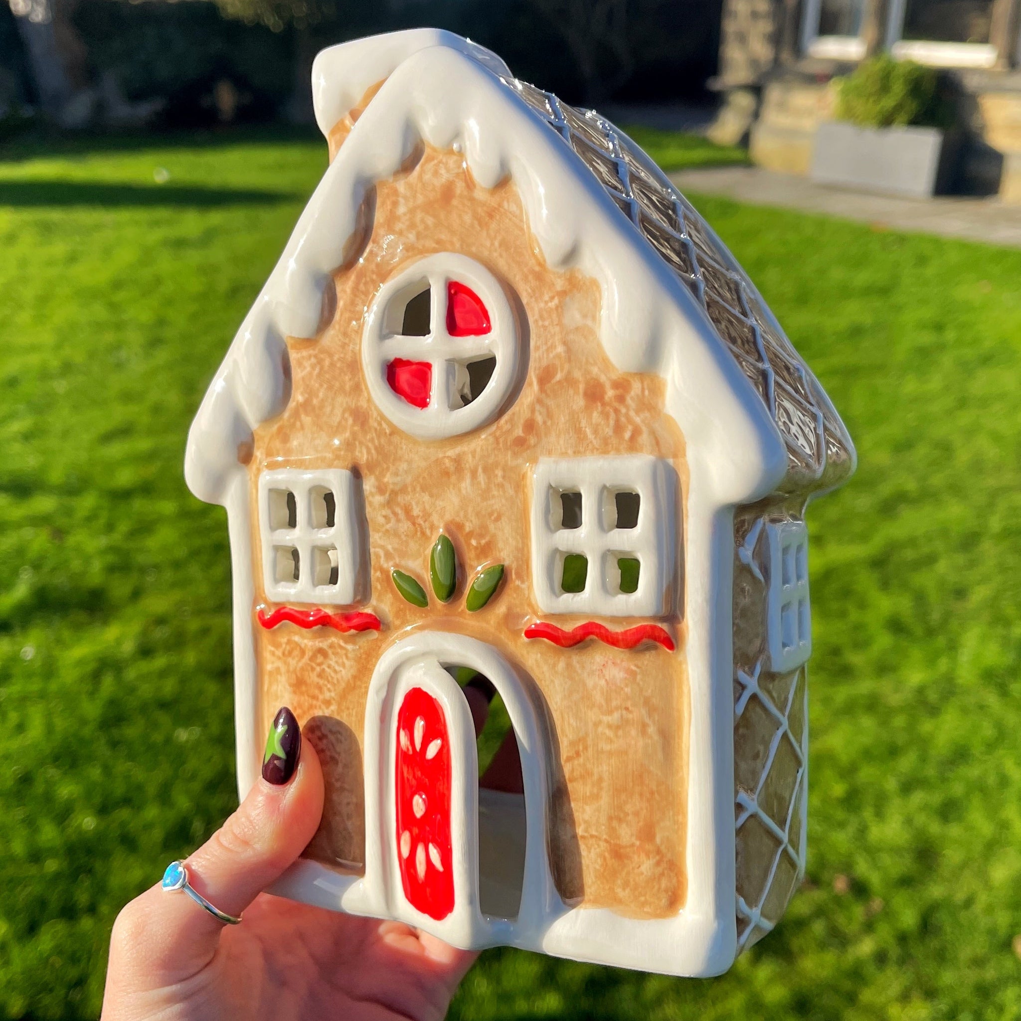 Get into the festive spirit with this charming ceramic gingerbread house T-light holder.