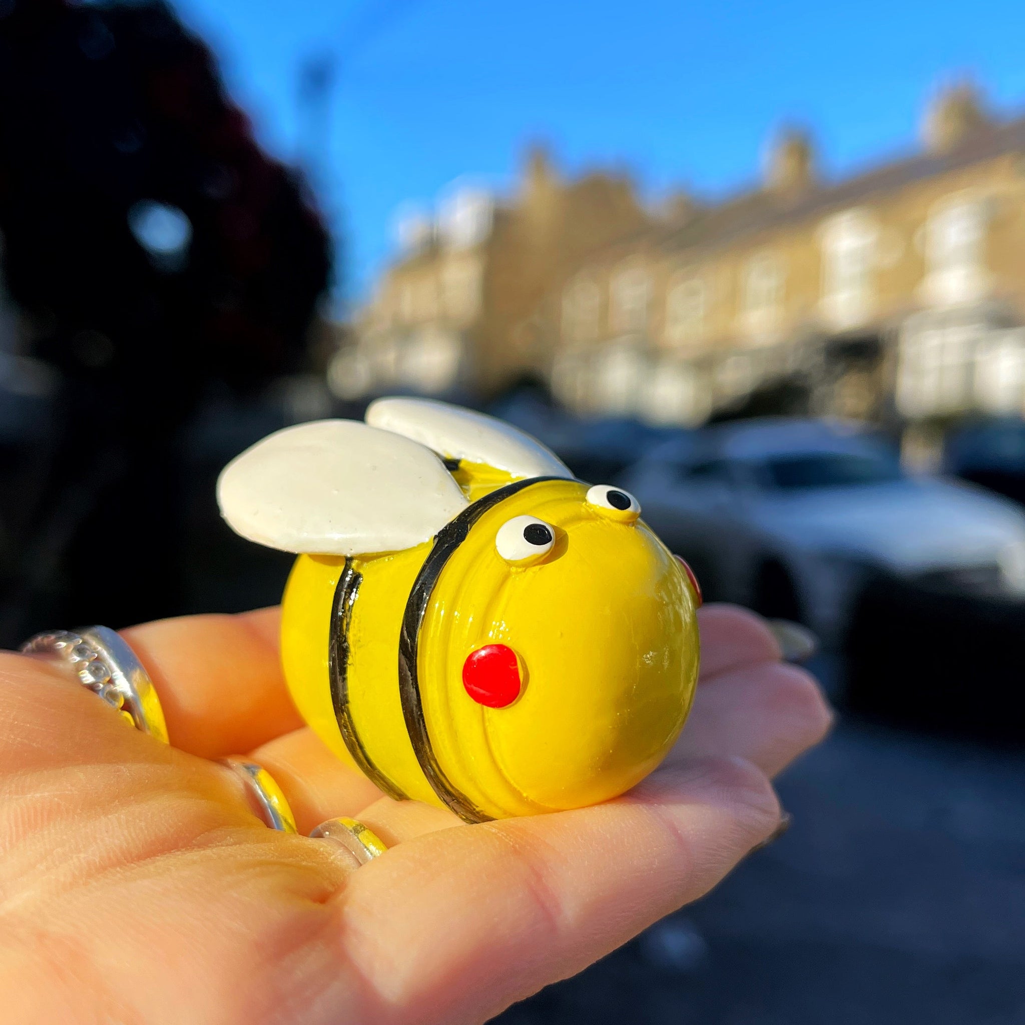 This uplifting mini resin bee comes presented in a lovely matchbox gift box featuring the cheerful phrase “Don’t worry, bee happy.”