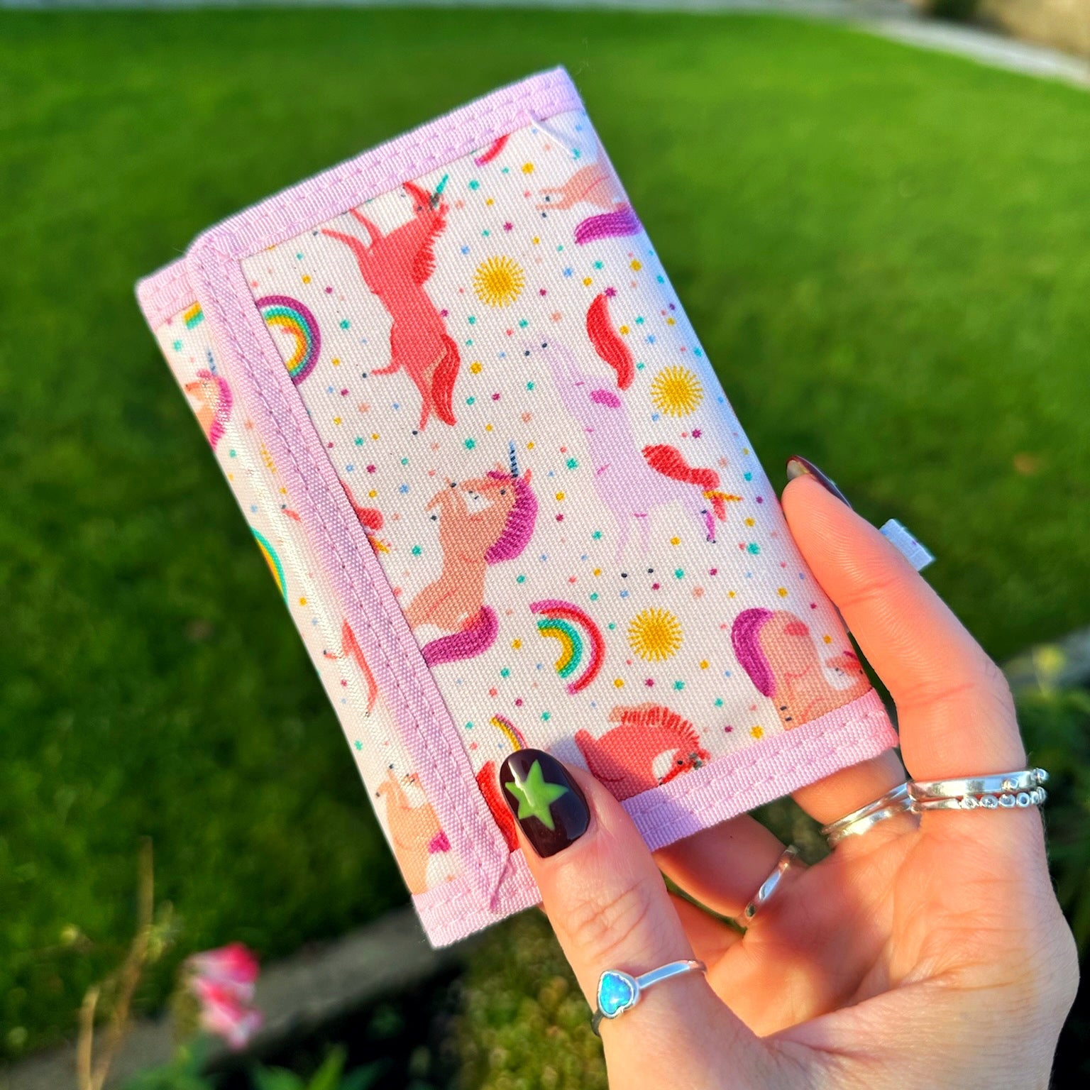 A fun and practical wallet for little ones, featuring a vibrant unicorn design.